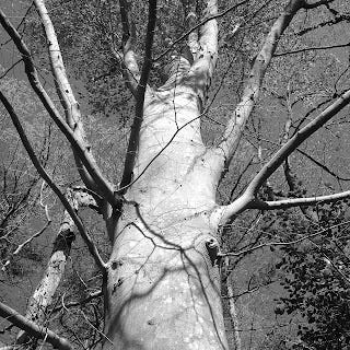 I happen to look up. One silent hawk circles, Broad and easy overhead. It joins 3 or 4 more, Then circles off into the distance. I look down again. And hear the call of something, A trill. A “ha ha ha ha.” The tall, slender trees talk to each other, creaking. The water ripples, coldly, un-rushed, but not slow. Things move on. The wind in my hair, Birds in the distance, Calling, seeking, Lessening, deepening. A felled tree, like a bridge, Reaches halfway across the river. It’s green on the other side. But it’s green over here, too. I hear the rush of something, Like a highway, far away. A muffled “vrrrrr, vrrrrr.” I think of standing in the quiet, sacred center of Central Park And still hearing traffic. The roar in the distance Proves to be the wind Sightlessly moving through trees. A storm is not coming, but I think of how the air feels When one is on its way. The invisible roar reaches us— The birds and me and this creaking tree— And a quiet, full feeling emerges. I take part. The talking trees groan side to side, Springing to life, saying, unsteadiness, readiness. Water moves under the dock. I sit. I stand. I soften my knees and rock into my heels. My cold hands know This world is sunless, radiant, Breaking away. A fish! Out of nowhere Leaping midair, A blip in the continuum. I drop down. The sun’s up there, somewhere Behind this gray. I might wait. A fish! I might not.